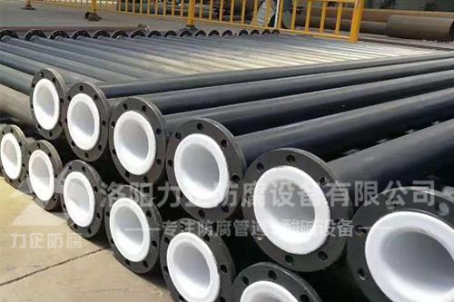 鋼襯(chèn)塑襯(chèn)四氟防腐管道。鋼襯(chèn)四氟管道又稱四氟管道、四氟複合管道,是由優質聚四氟乙烯制作而成,原材料聚四氟乙烯採(cǎi)用模壓、注塑等工藝制作而成,是一種具有優異耐高溫、耐腐蝕、耐酸、耐堿、脫硫脫硝、化工污水等特性的管道。